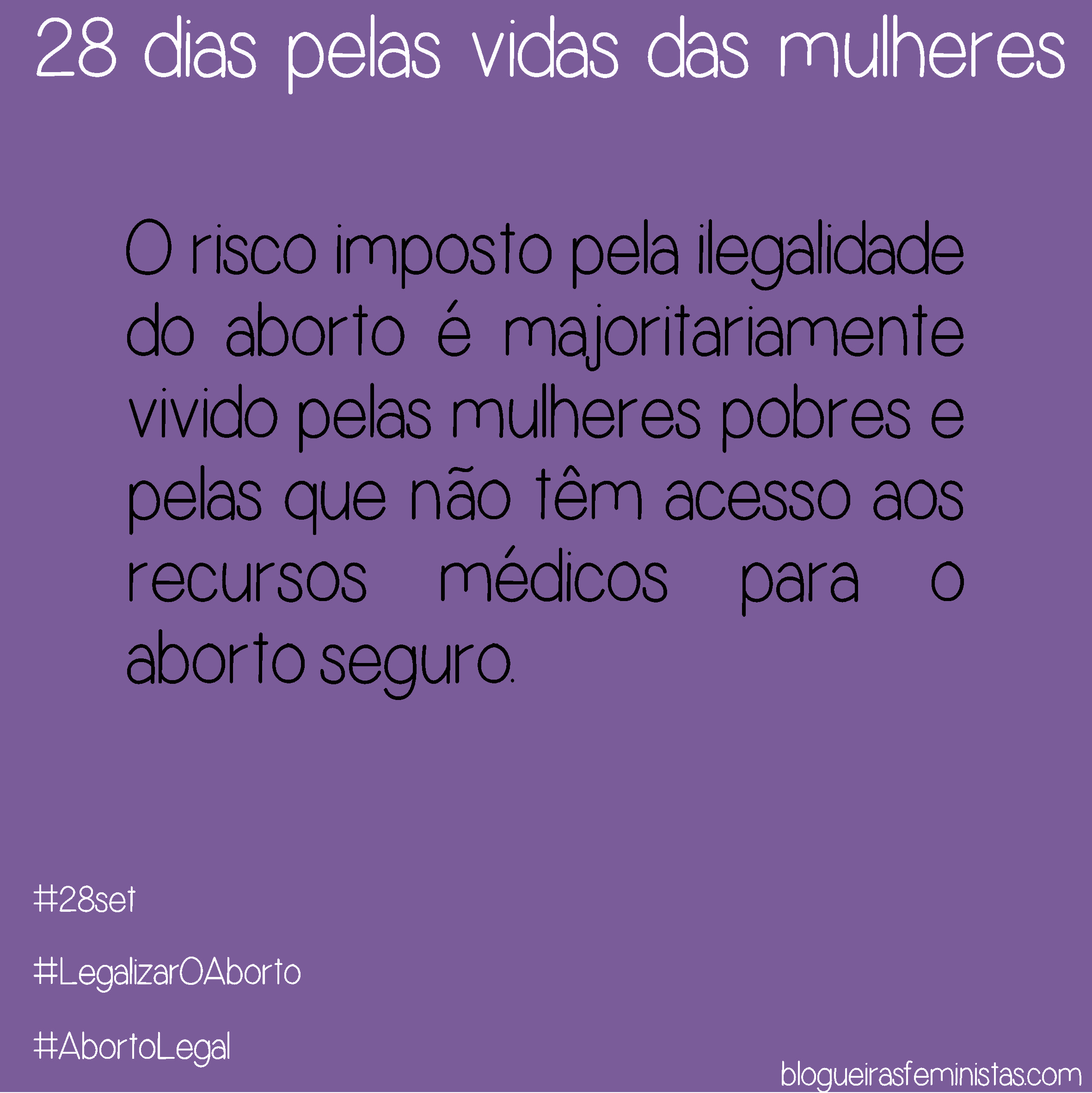 – Onde é criminalizado, o aborto pode ser uma pena de morte para as mulheres, especialmente as mulheres pobre que não tem como pagar clínicas ou medicamentos confiáveis;